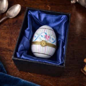 Perfect for collectors, gift-giving, or those who appreciate timeless decorative objects, this porcelain egg blends traditional craftsmanship with understated luxury.